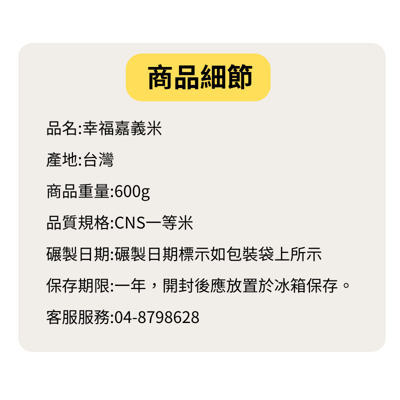 幸福嘉義米 600g | 台農82號白米