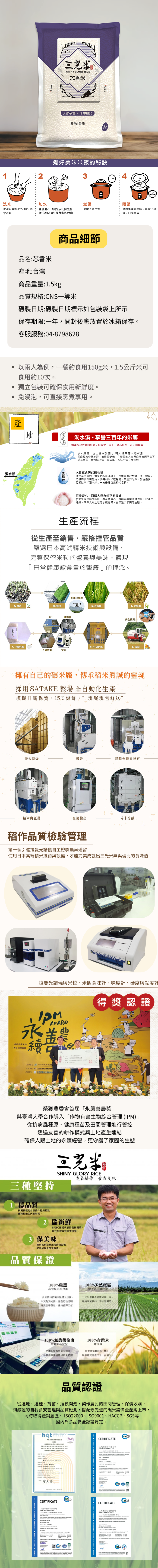 採用「國產長秈米」品種,以IPM農法實踐農業永續發展。