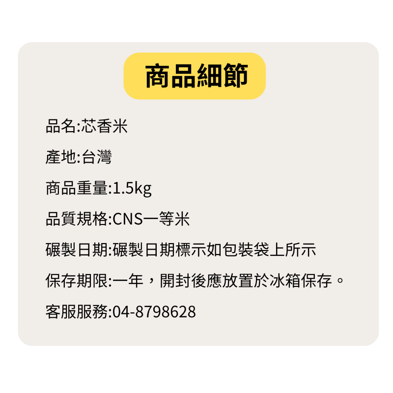 芯香米 1.5KG 國產長秈米|香Q可口清新芋香味