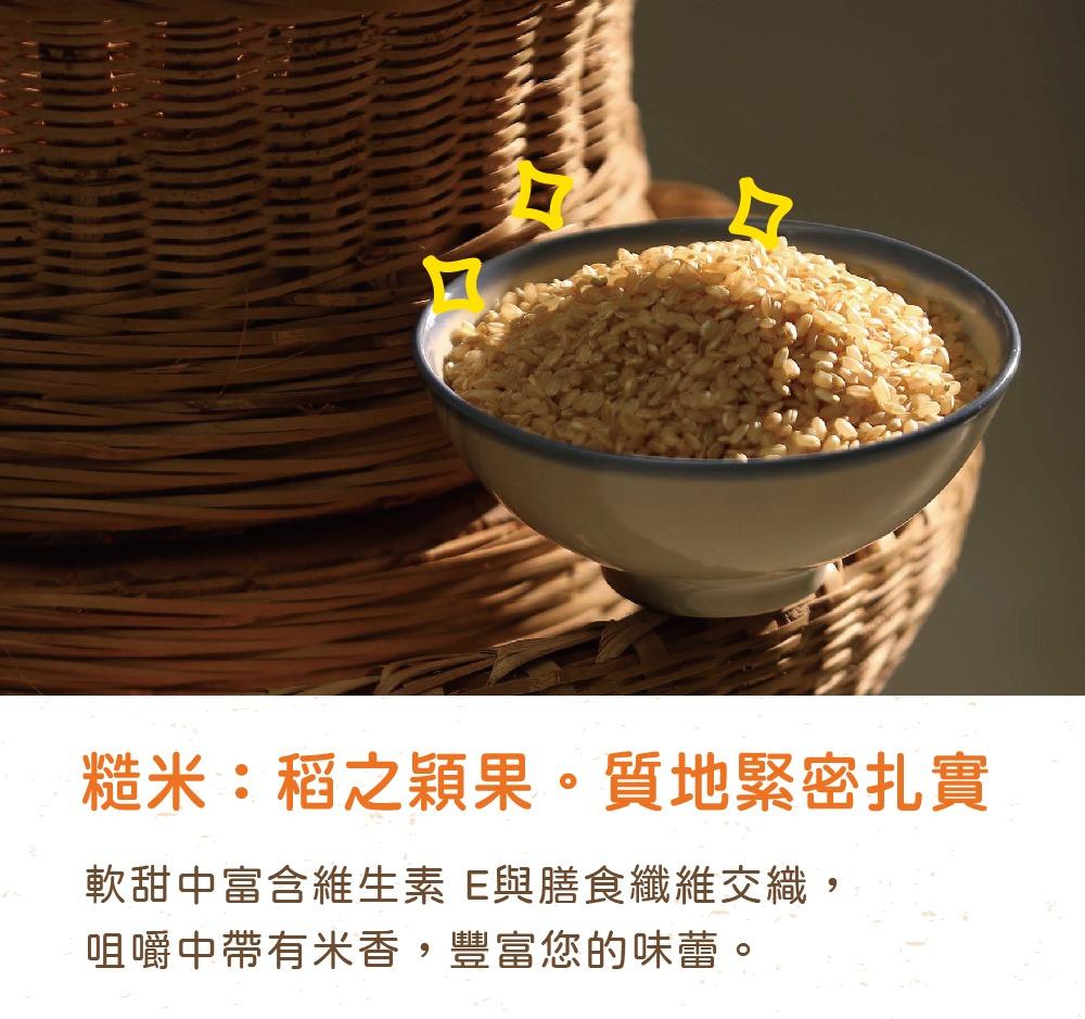 糙米擁有玄米之美譽,多種營養成分交織而成,甜中帶有嚼勁又Q彈。