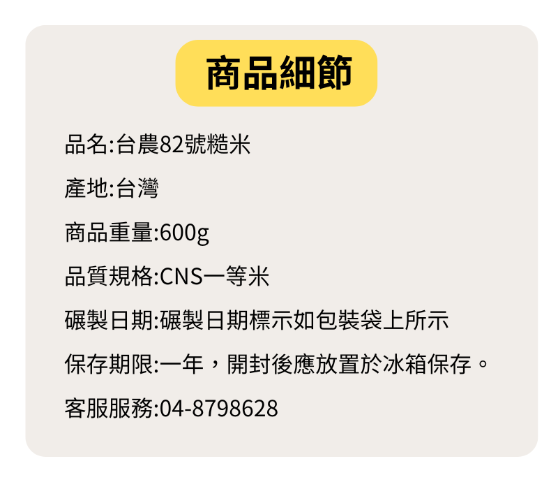 台農82號糙米 600G