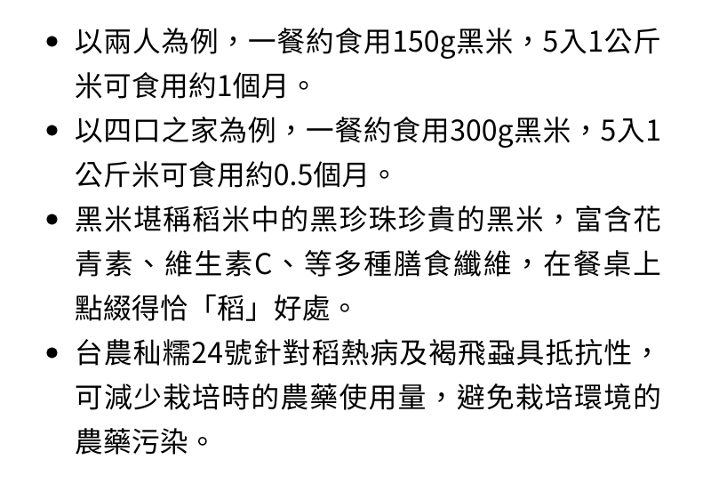 以兩人為例,5入1公斤米可食用約1個月。