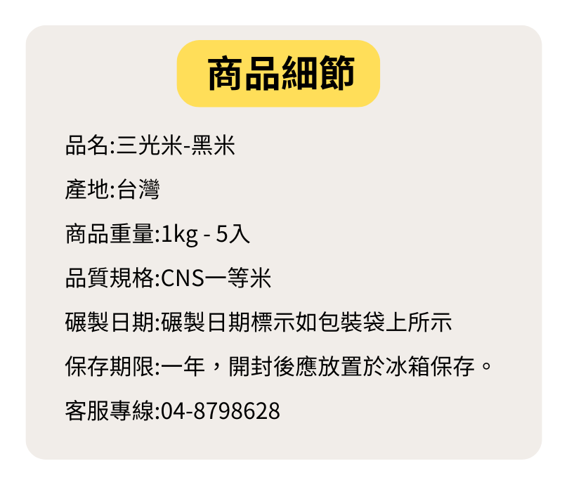 【三光米】黑米1KG-5入