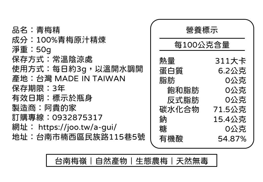 【產地】臺南市楠西區梅嶺阿貴的家【淨重】50g
