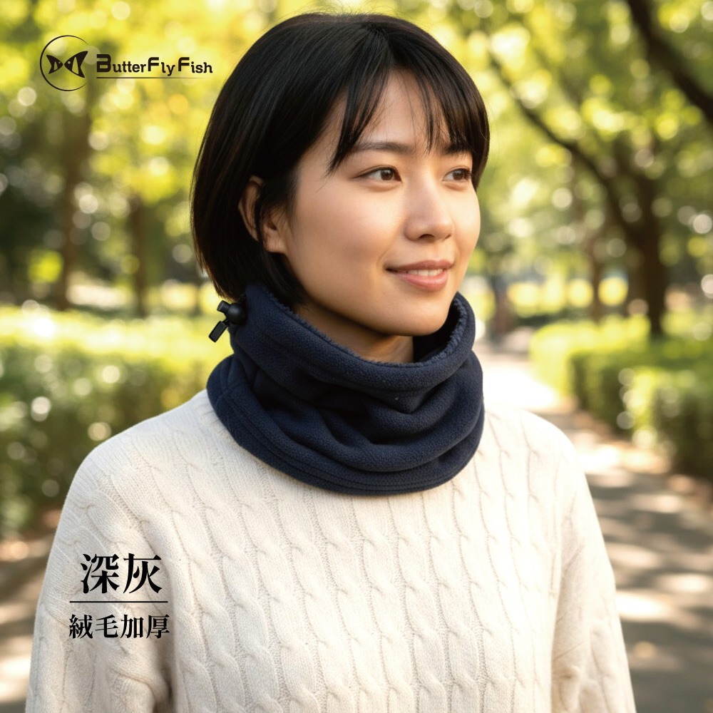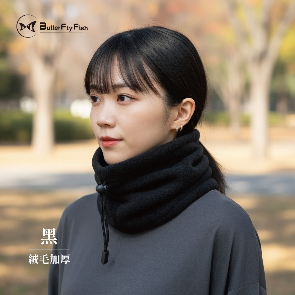 ButterFlyFish 絨毛加厚圍脖 NW2202,採用親膚絨毛內層與加厚保暖設計,有效阻擋冷風、鎖住熱度,適合 0–15°C 氣溫使用。可作圍巾、脖圍、頸圍,多用途穿戴,適合登山健行、通勤騎車、戶外活動與日常保暖。