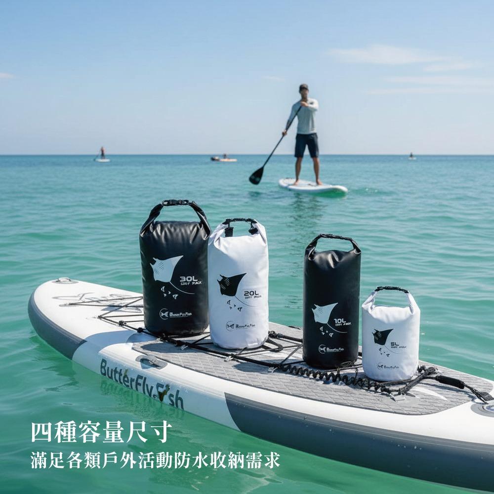 ButterFlyFish Manta 系列提供 5L、10L、20L、30L 四種容量,滿足從隨身物品到戶外裝備的不同收納需求,靈活應用各種戶外情境。
