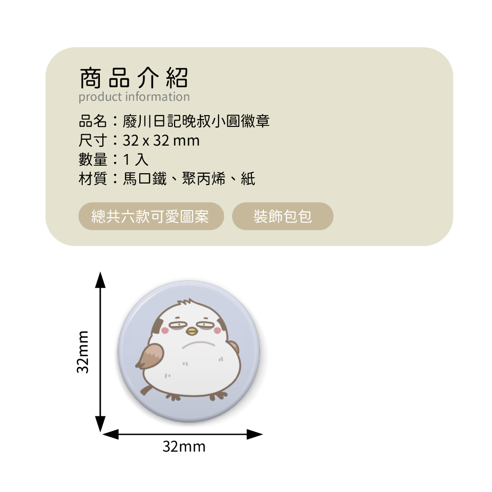 品名:廢川日記晚叔徽章