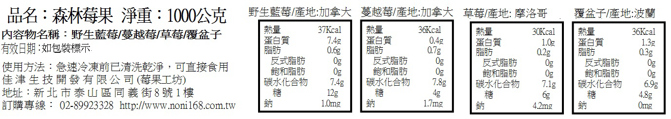*內容物:淨重1000公克(包含草莓,蔓越莓,覆盆子,野生藍莓)