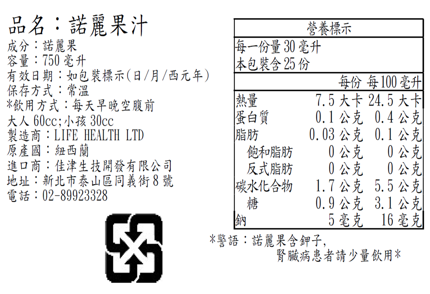 來自紐西蘭純淨無汙染的國度,原裝進口-100%諾麗汁/不含防腐劑、沒有重金屬、不添加糖、不加香料。