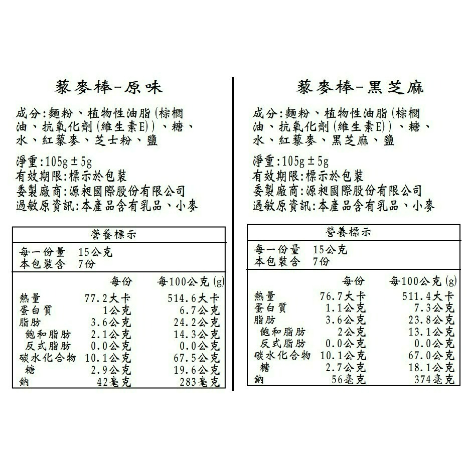 黑芝麻藜麥棒(7入/105g)