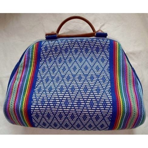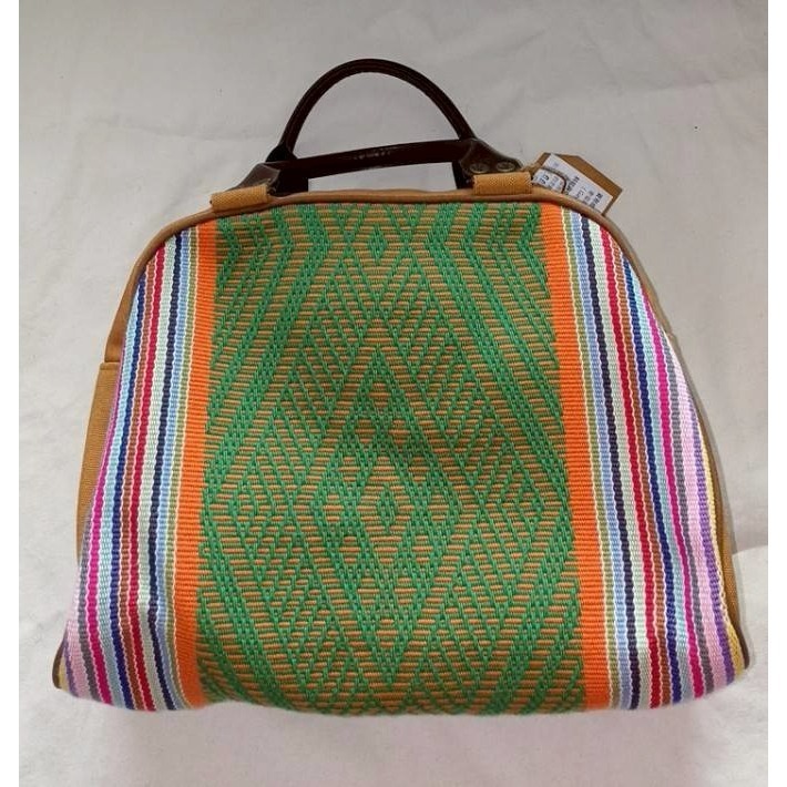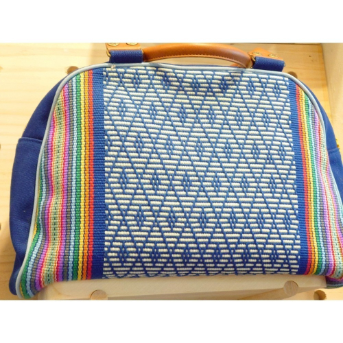 融合傳統工藝與現代設計,這包不僅耐用舒適,還有那獨特的藍白幾何圖案和彩虹色條紋,絕對讓你走到哪裡都像在走T台。